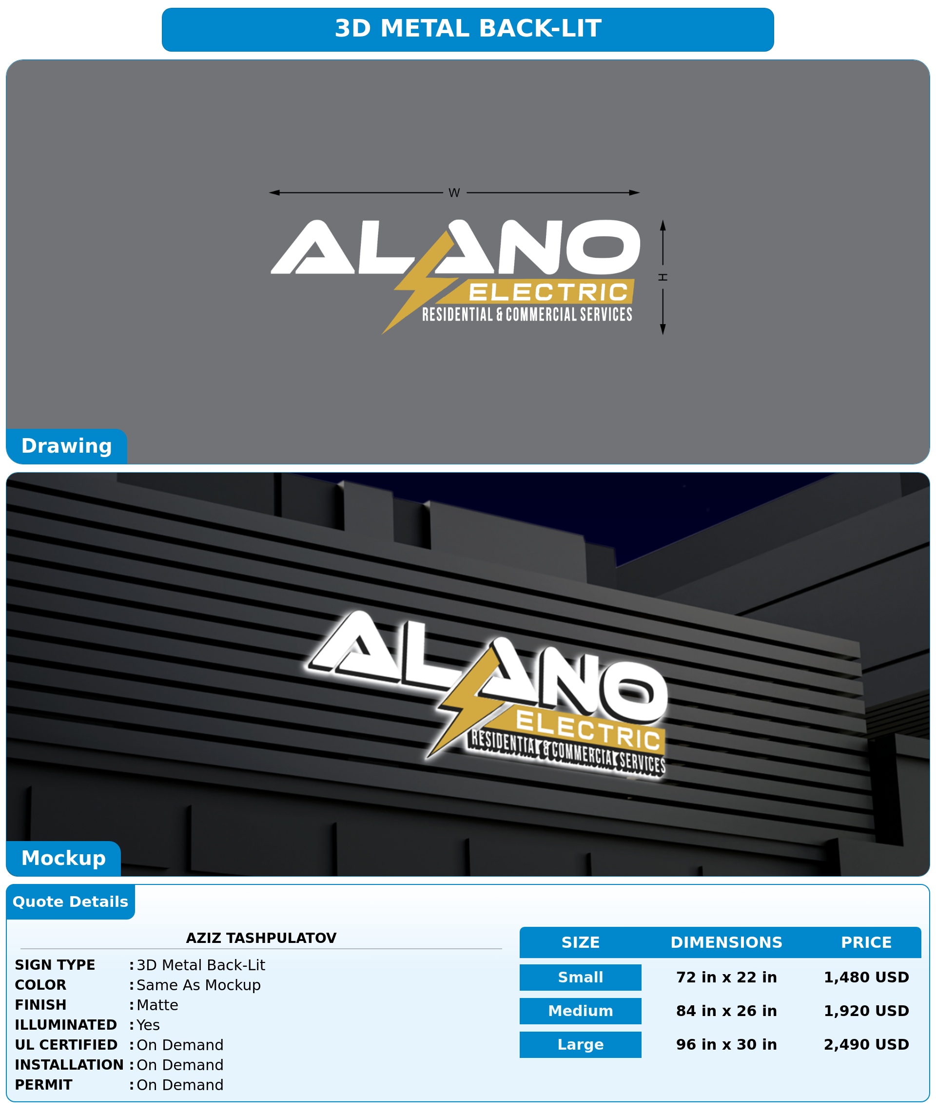 Eye-catching custom 3D sign for Aziz Tashpulatov