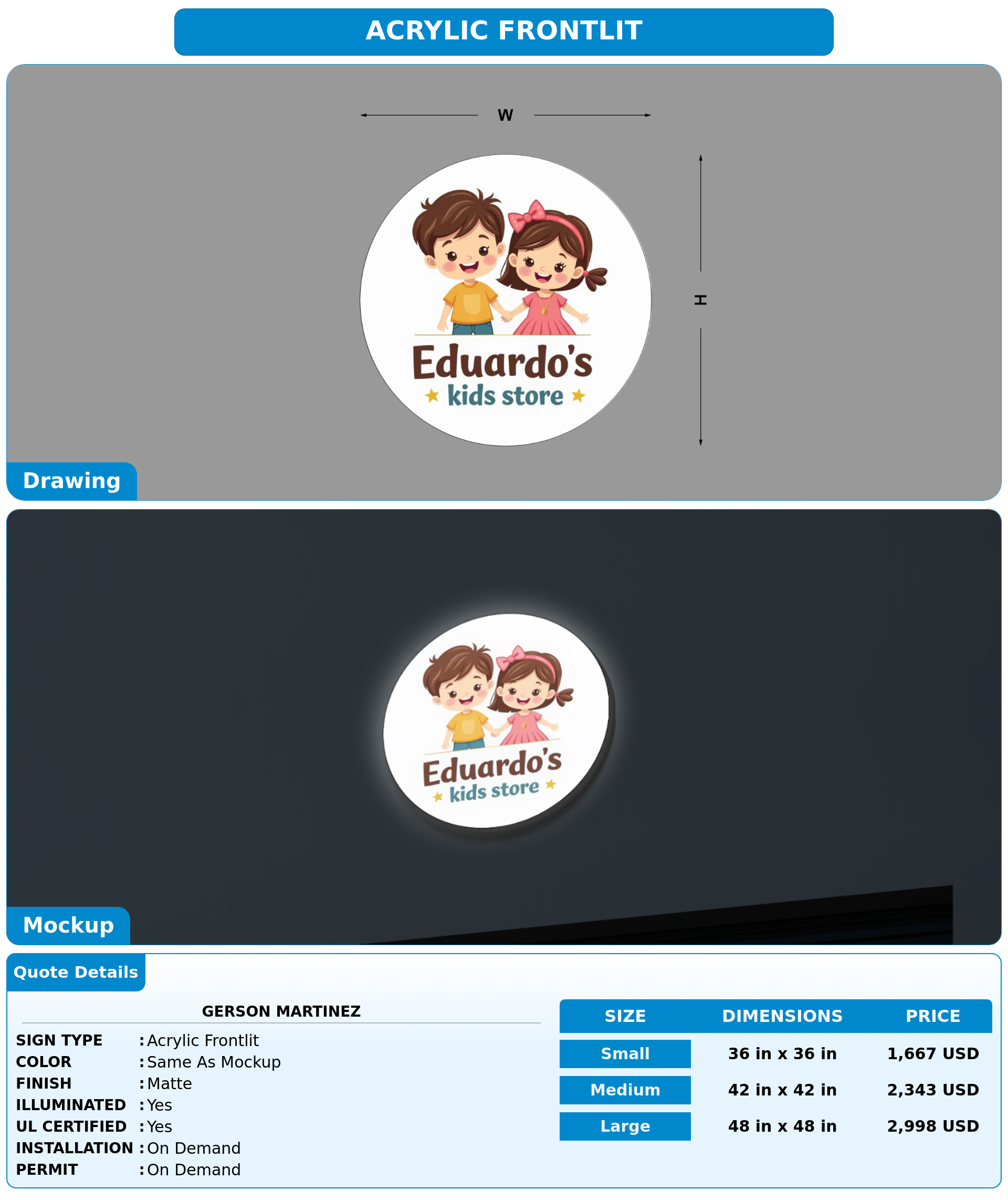 Eye-catching custom 3D sign for Gerson Martinez